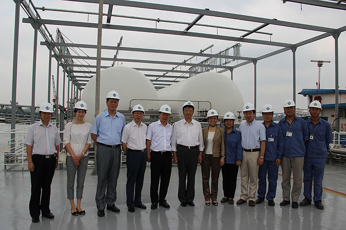 全國(guó)政協(xié)經(jīng)濟(jì)委員會(huì)副主任張國(guó)寶蒞臨海企港華水上LNG加注站考察