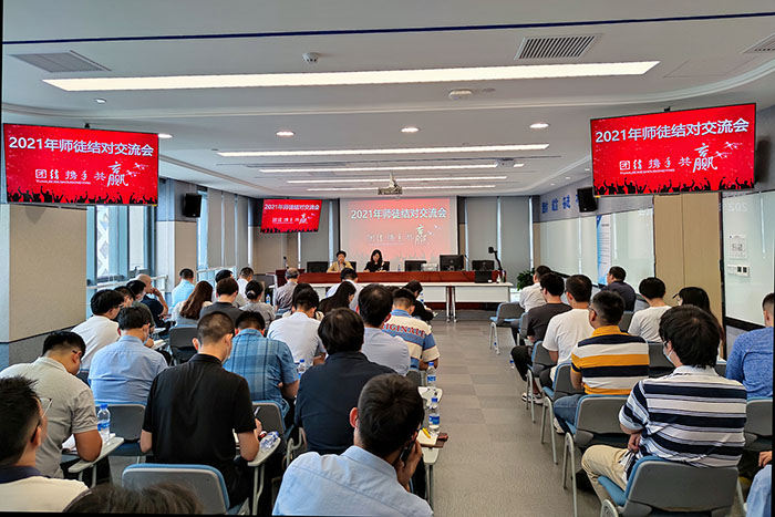 ????????近年來(lái),江蘇海外集團(tuán)國(guó)際技術(shù)工程有限公司(以下簡(jiǎn)稱(chēng)公司)一直關(guān)注青年員工的成長(zhǎng)與培養(yǎng),采取了諸多有力舉措,“師徒結(jié)對(duì)”活動(dòng)就是其中之一。2021年8月19日下午,公司2021上半年度“師徒結(jié)對(duì)”效果匯報(bào)交流會(huì)在14樓開(kāi)標(biāo)一廳舉行。會(huì)議由綜合辦公室主任王海婷主持,公司領(lǐng)導(dǎo)班子到會(huì)講話,各業(yè)務(wù)部門(mén)負(fù)責(zé)人參加,結(jié)對(duì)的全體“師傅”和“徒弟”近70人與會(huì)。