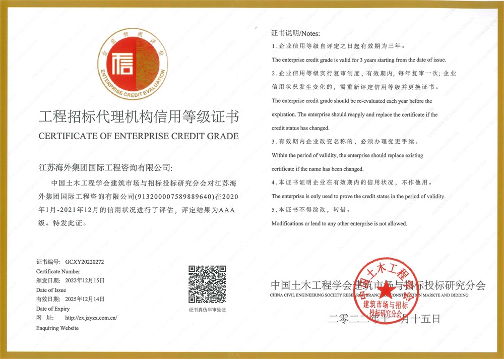 中國招標投標協(xié)會企業(yè)信用等級AAA證書
